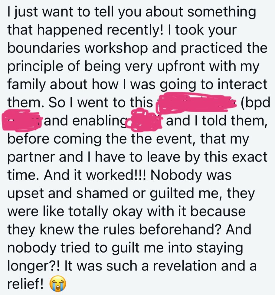 The Confident Boundaries Membership is for adults navigating complicated relationships with a parent who has (diagnosed or suspected) borderline, narcissistic, or histrionic personality disorder.